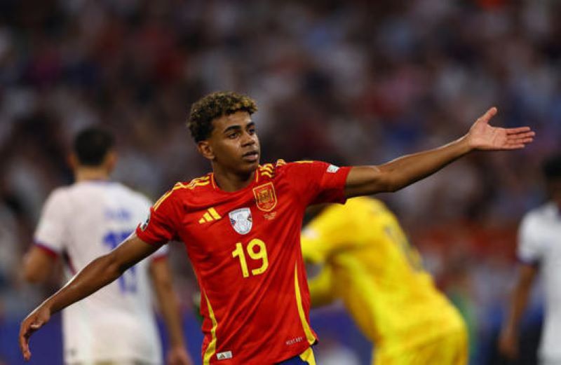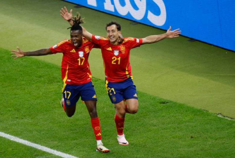 وجاءت الدقيقة (47) بالنبأ السعيد للإسبان عندما تمكّن نيكو ويليامز من افتتاح التسجيل بعد تمريرة رائعة من الصاعد لامين جمال، في حين أهدر داني أولمو فرصة ذهبية لمضاعفة النتيجة بعد انفراده بالحارس بيكفورد لكن كرته مرّت بجانب المرمى الإنجليزي (49).