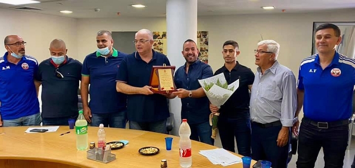 وفي نهاية اللقاء قام رئيس الإدارة رجل الأعمال السيد عارف تيمور سلامة وإدارة ولاعبي فريق المحبة هبوعيل قلنسوة بتقديم درع تكريمي للسيد شعاع.