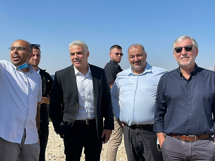 في قرية خشم زنة غير المعترف بها (مدخل نبطيم)، لحظات قبل بدء الجولة الميدانية في النقب والتي يشارك فيها وزير الخارجية ورئيس الحكومة البديل يئير لبيد، ورئيس القائمة العربية الموحدة د. منصور عباس، ووزير الرفاه والمسؤول عن ملف النقب في الحكومة مئير كوهن، ونائب وزير الأمن الداخلي ومركز الحكومة بموضوع مكافحة الجريمة في المجتمع العربي يوآڤ سيچالوڤيتش، إضافة لمسؤولين حكوميين من عدة وزارات، حيث ستشمل الجولة زيارة عدة مناطق في القرى والبلدات العربية في النقب، بهدف الإطّلاع ميدانيًا وعن قرب على المشاكل والتحديات في النقب عامة وفي القرى مسلوبة الاعتراف خاصة.