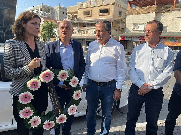 وصلت اليوم الثلاثاء الوزيرة لحماية البيئة تمار زاندبرغ الى كفر قاسم ووضعت إكليلاً من الزهور على النصب التذكاري لشهداء مجزرة كفر قاسم.
