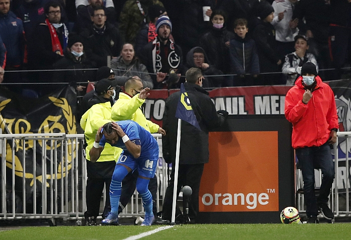 توقفت مباراة أولمبيك ليون ضد ضيفه أولمبيك مارسيليا، ضمن الجولة 14 من الدوري الفرنسي، بعدما ألقت الجماهير قارورة مياه اصطدمت برأس ديميتري باييه لاعب مارسيليا.