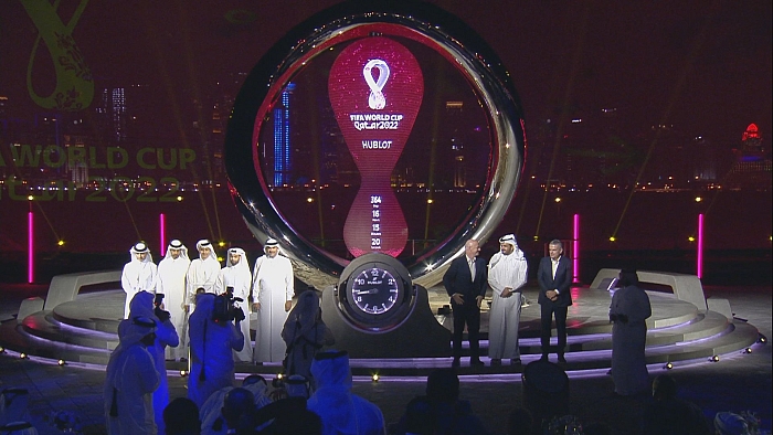 كشفت قطر عن ساعة العد التنازلي لعام واحد، على انطلاق منافسات كأس العالم 2022، في احتفالية خاصة نظمتها اللجنة العليا للمشاريع والإرث، بالتعاون مع الاتحاد الدولي لكرة القدم (الفيفا).