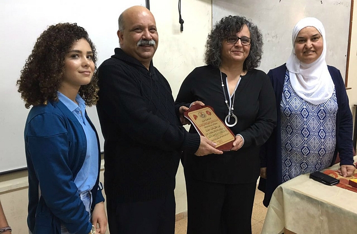 واختتم اللّقاء بتكريم المحتفى بها بدرع مقدّم من المدرسة مكتوب بالخطّ العربيّ المميّز.