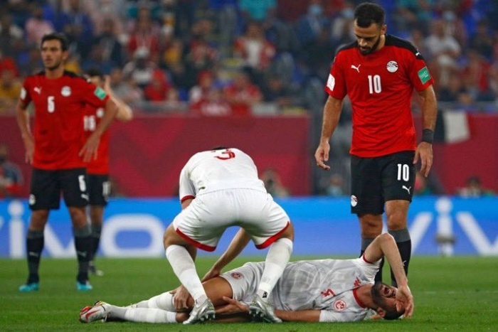 وكان مدافع نسور قرطاج ونادي العين الإماراتي، قد تعرض للإصابة في الركبة وسقط 3 مرات داخل الملعب، متأثرًا بالإصابة التي تعرض لها.