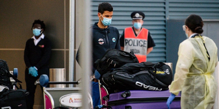وتم نقل اللاعب الصربي، المتوج 9 مرات بلقب أستراليا الكبرى و20 لقبا للجراند سلام في المجمل، إلى فندق بارك بمدينة ملبورن، والذي يضم أيضا مجموعة من طالبي اللجوء الذين تم احتجازهم من قبل سلطات الهجرة، بعد أن تم استجوابه لأكثر من 8 ساعات من قبل سلطات حرس الحدود، لعدم امتثاله للمتطلبات المفروضة بسبب كوفيد-19.