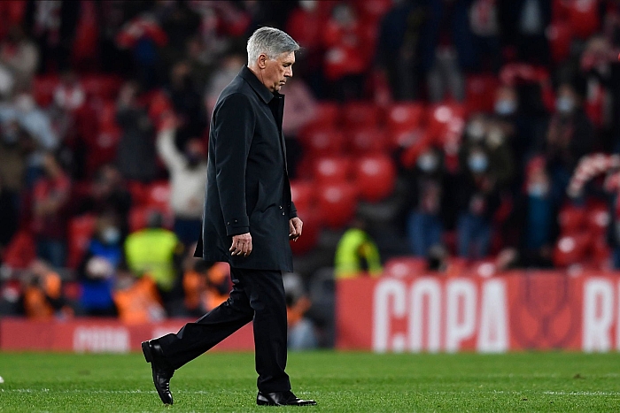 عبر الإيطالي كارلو أنشيلوتي، مدرب ريال مدريد، عن حسرته، بعد إقصاء فريقه من كأس الملك، بالخسارة أمام أتلتيك بيلباو 0-1، في ربع النهائي.