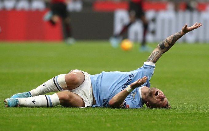 أثار شيرو إيموبيلي، مهاجم لاتسيو، القلق في إيطاليا، إثر تعرضه لضربة في كاحل القدم، إثر التحام مع كالولو لاعب ميلان.