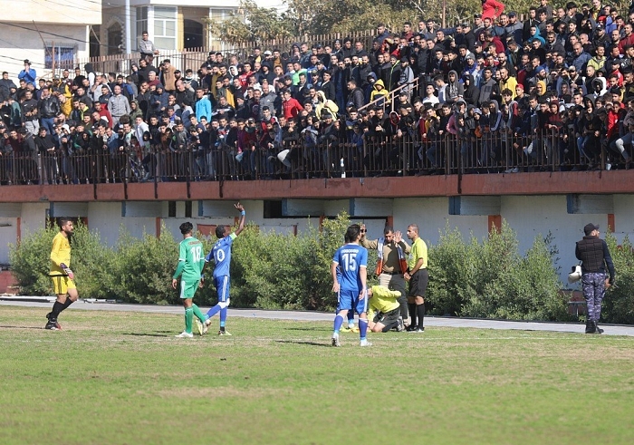 وتوقفت مباراة الشاطئ والصداقة بعد 20 دقيقة من انطلاق اللقاء، بعد تعرض الحكم المساعد خالد البيك، لإصابة مباشرة بمقذوفة نارية في ظهره، ما استدعى نقله للمستشفى.