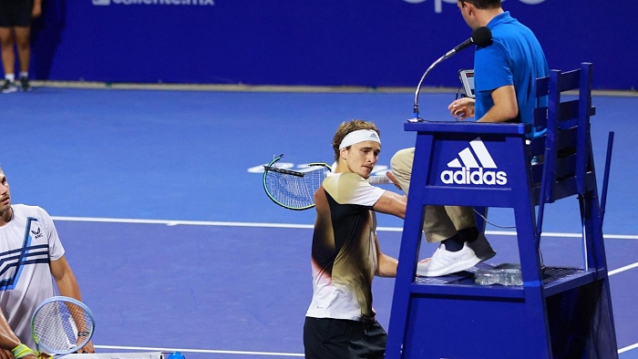 وقام زفيريف بتحطيم مضربه بعنف عدة مرات أمام الحكم الرئيسي عقب الخسارة 2-6 و6-4 و6-10 مع زميله في منافسات الزوجي مارسيلو ميلو، خلال مباراتهما مع لويد جلاسبور وهاري هيليوفارا يوم 23 فبراير الماضي.