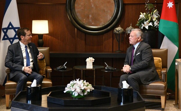 وجاء من مكتب رئيس الدولة ان الرئيس هرتسوغ والعاهل الأردني اجتمعا لوحدهما في البداية، ثم انضم الى الاجتماع فيما بعد المستشارين، وان هدف الزيارة "توطيد العلاقات بين الدولتين والحفاظ على الاستقرار في "فترة الأعياد" القريبة، بالإضافة الى تعزيز السلام والعلاقات بين البلدين".