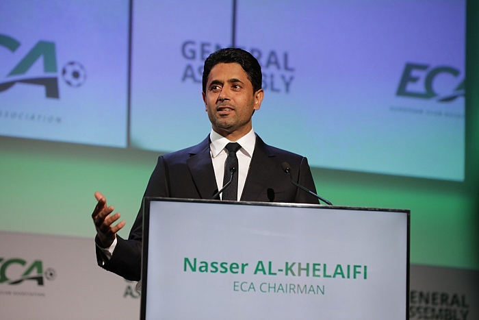 جدد القطري ناصر الخليفي، رئيس نادي باريس سان جيرمان، رئيس رابطة الأندية الأوروبية، موقفه الرافض لمقترح دوري السوبر ليج.
