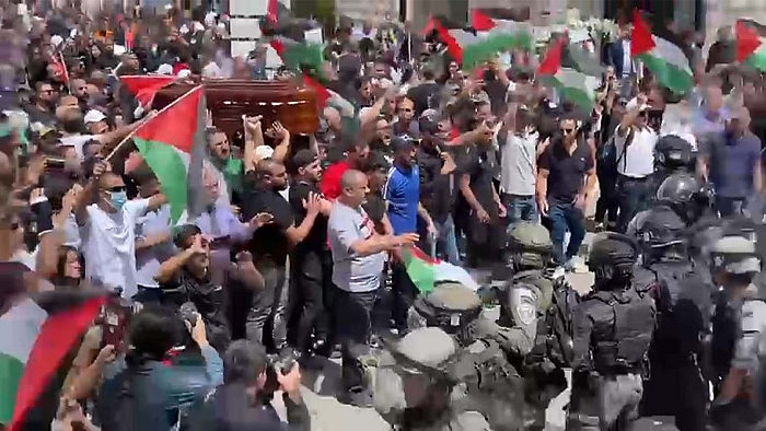 اعتدت قوات الاحتلال بوحشية على الموكب الجنائزي للصحفية شيرين أبو عاقلة ومنعت المشيعين من تشييع جثمانها وذلك عند اخراج النعش من المستشفى الفرنسي في القدس.