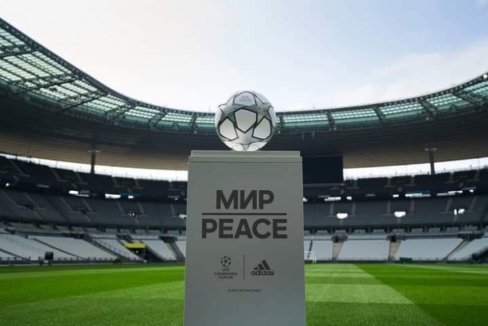 وكشفت شركة "أديداس" عن كرة نهائي دوري الأبطال، التي ستحمل كلمة "السلام" باللغة الإنجليزية وبالنص السيريلي، وسيتم طرحها في مزاد علني بعد المباراة على أن يخصص عائد بيعها لدعم الجهود الإنسانية.