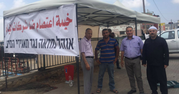 شارك النائب د. عبد الله ابو معروف (الجبهة – القائمة المشتركة) صباح أمس الاحد سواعد أعضاء اللجنة الشعبية للقرى التسع المناهضة لشركة اتحاد العين للمياه والصرف الصحي، في بناء خيمة الاحتجاج مقابل مكاتب "العين" في قرية يركا، كخطوة أولى لتصعيد النشاطات الشعبية من أجل حلّ الشركة.