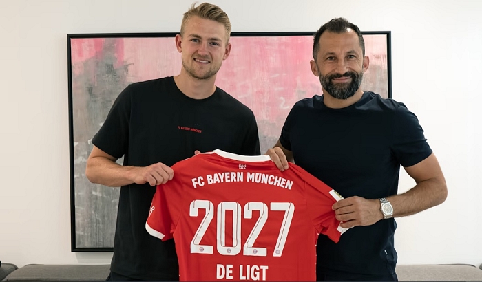 أعلن بايرن ميونخ، بطل الدوري الألماني في المواسم العشرة الأخيرة، تعاقده رسميا مع المدافع الدولي الهولندي ماتياس دي ليخت.