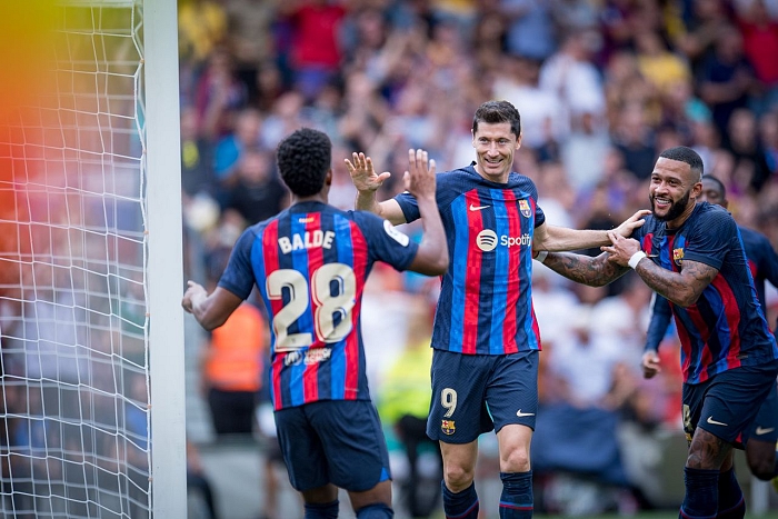 وعاد بالدي وأهدى كرة حاسمة للهولندي ممفيس ديباي، سددها مهاجم برشلونة بقوة في سقف المرمى، محرزا الهدف الثاني في الدقيقة 41.