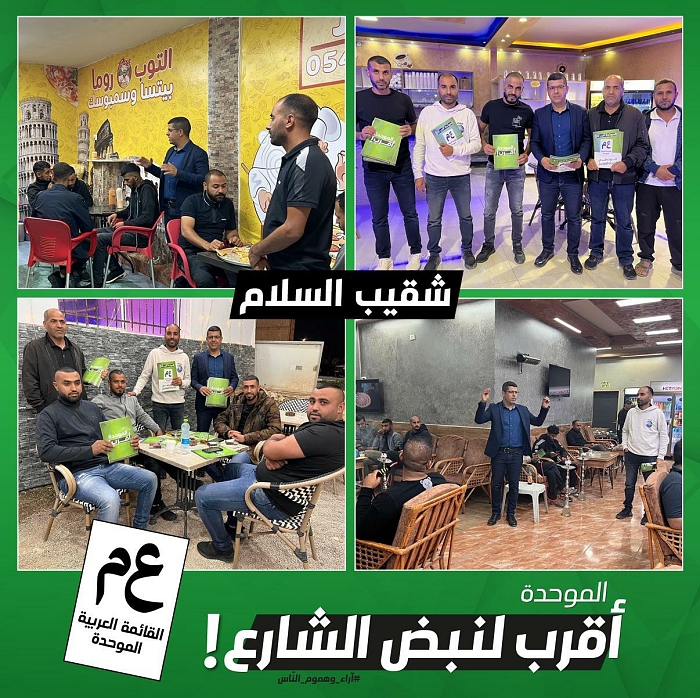 الموحدة أقرب لنبض الشارع وأقرب للشباب. مرشح النقب وليد الهواشلة يشارك مع عدد من الناشطين والمؤيدين في توزيع النشرة الانتخابية للموحدة "الموحدة أقرب" على الشباب في مقاهي شقيب السلام.