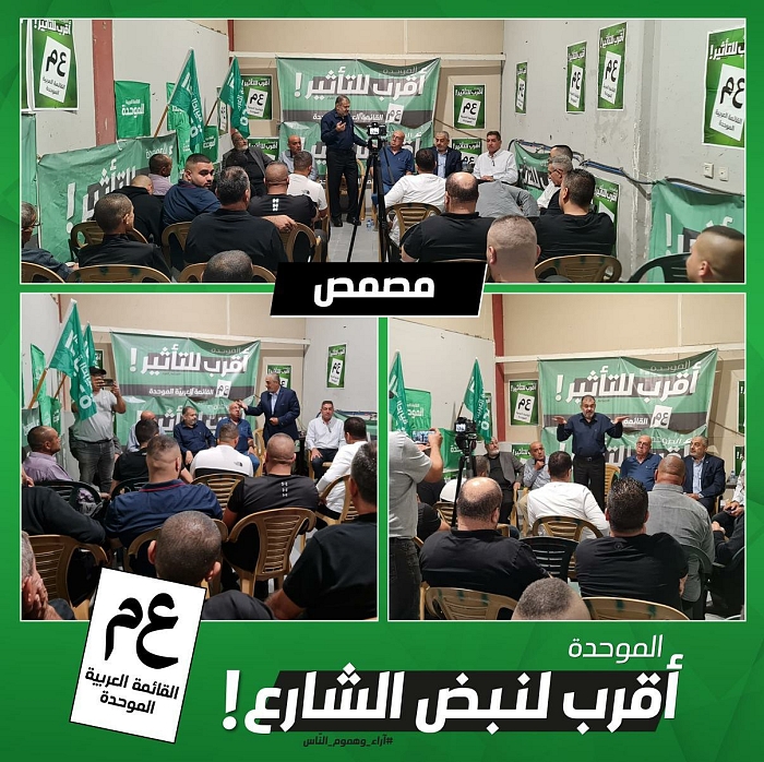 اجتماع انتخابي في مقر الموحدة في قرية مصمص، بمشاركة النائب وليد طه، ومرشح وادي عارة والمثلث الشمالي الأستاذ عبد الكريم مصري، والعشرات من الناشطين والمؤيدين.