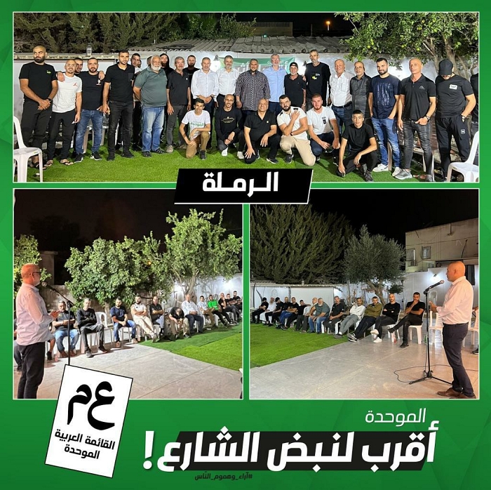 اجتماع انتخابي واسع في مدينة الرملة دعمًا للموحدة ونهجها الأقرب للتأثير، بمشاركة النائب وليد طه، والشيخ صفوت فريج رئيس الحركة الإسلامية في البلاد، والمرشح إبراهيم أبو لبن- ابن مدينة الرملة، والشيخ علي الدنف رئيس الحركة الإسلامية في الرملة.