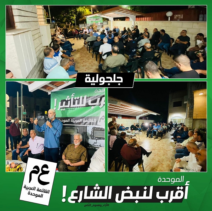 اجتماع انتخابي دعمًا وتأييدًا للموحدة ونهجها الأقرب، من قبل آل شواهنة في جلجولية، في بيت السيد يعقوب شواهنة (أبو الأدهم)، بمشاركة رئيس الموحدة السابق الشيخ إبراهيم صرصور، والشيخ جابر جابر رئيس الحركة الإسلامية في جلجولية.