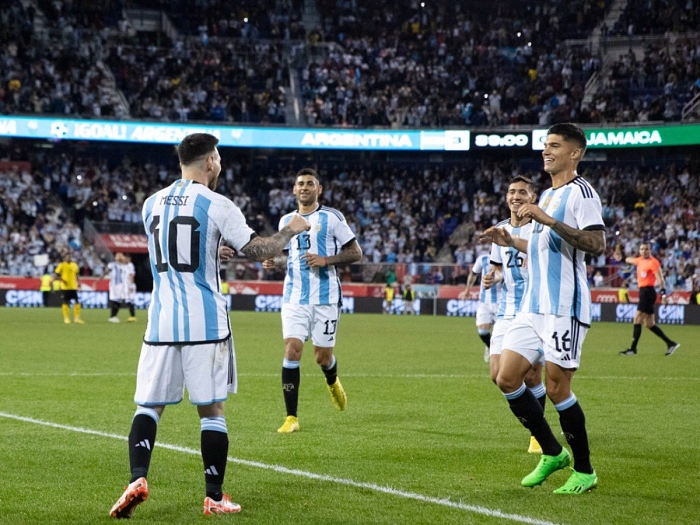 الدفاع: ليساندرو مارتينيز (مانشستر يونايتد الانجليزي)، خوان فويث (فياريال الاسباني)، نيكولاس أوتامندي (بنفيكا البرتغالي)، ناهويل مولينا (أتلتيكو مدريد الاسباني)، غونسالو مونتييل وماركوس أكونيا (اشبيلية الاسباني)، جيرمان بيسيلا (ريال بيتيس الاسباني)، نيكولاس تاليافيكو (ليون الفرنسي)، كريستيان روميرو (توتنهام الانجليزي).