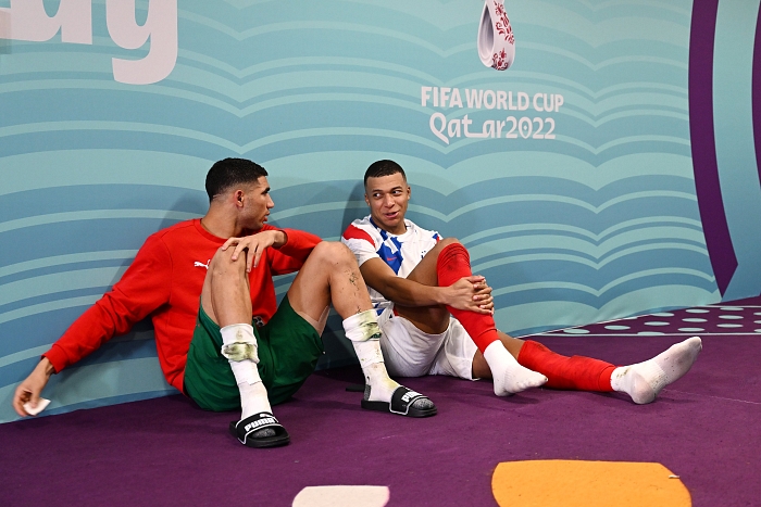 أكد المغربي أشرف حكيمي، والفرنسي كيليان مبابي، لاعبي باريس سان جيرمان، على قوة صداقتهما بعد انتهاء مباراة منتخبيهما في كأس العالم.