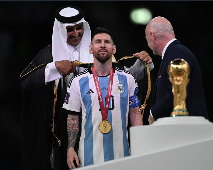 وكتب العُماني أحمد البرواني، رسالة إلى ميسي، عرض من خلالها شراء "البشت" الذي ألبسه إياه الشيخ تميم بن حمد، أمير دولة قطر.