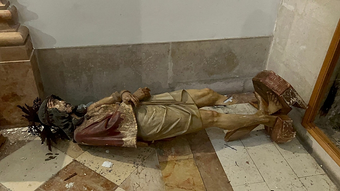 قام احد المتطرفين اليهود بالاعتداء على تمثال المسيح في كنيسة حبس المسيح في البلدة القديمة، قبال المدرسة العمرية قبل السيطرة من قبل احد حراس الكنيسة .
