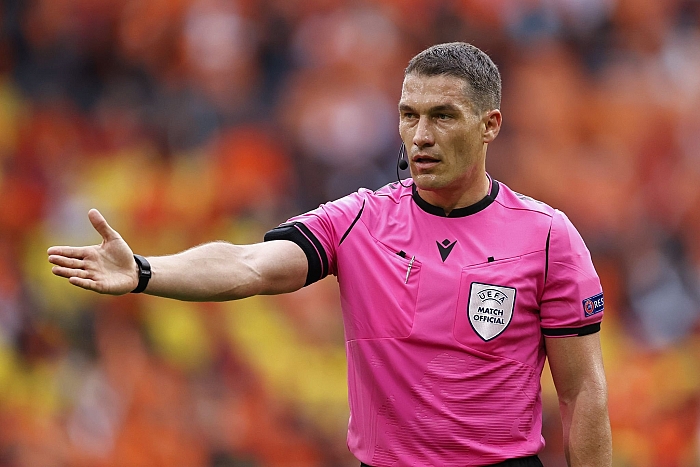 وكلف "يويفا" الحكم الروماني استفان كوفاكس إدارة المباراة، على أن يساعده مواطناه فاسيل فلورين مارينيسكو وأوفيديو أرتيني، في حين سيكون الحكم الرابع هوراتيو فيسينيك.