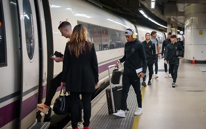وقال تشافي هيرنانديز، مدرب برشلونة، أن برشلونة قرر السفر بالقطار، لأن الرحلة قصيرة ولأن المباراة ستلعب في وقت متأخر.