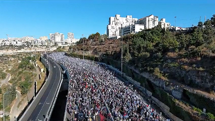 تشهد عدة مناطق في البلاد تظاهرات احتجاجية على التعديلات القضائية التي ينوي الائتلاف الحكومي الشروع بها، وأضخم هذه التظاهرات "مسيرة الاحتجاج" التي انطلقت من تل أبيب ووصلت، قبل قليل (مساء السبت)، القدس وضواحيها. وبحسب التقديرات فان عشرات الألوف يشاركون في مسيرة القدس.