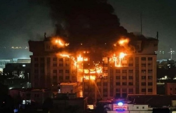 وامتد الحريق الذي اندلع أولاً في جزء من المبنى الى كل المبنى، وسقطت أجزاء من المبنى المحترق، فيما شاركت سيارات الإطفاء التابعة للجيش في إخماد الحريق. وتم تداول لحظة اندلاع الحريق (شاهدوا الفيديو الأول) بشكل واسع على مواقع التواصل الإجتماعي.
