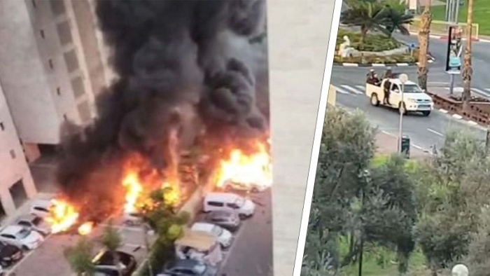 وتفاجأت اسرائيل، صباح اليوم (السبت)، باطلاق آلاف الصواريخ من قطاع غزة الى مناطق الغلاف على الحدود وصولاً الى محيط منطقة تل أبيب بالمركز. ومن ثم وصلت الصواريخ الى القدس. وهناك حالة ذهول تسيطر على البلاد، حيث بات الحديث يجري عن "مفاجأة" مشابهة لحرب السادس من أكتوبر! وبالمقابل انتشرت مقاطع فيديو على مواقع التواصل توثّق قيام جرافة فلسطينية بهدم السياج الفاصل في المنطقة الحدودية مع القطاع (شاهدوا الفيديو).