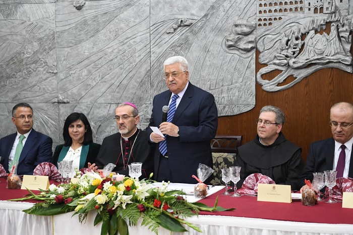 ورحب سيادته بضيوف فلسطين "الذين شاركونا في احتفالات أعياد الميلاد المجيدة، السفير الأردني ممثلا عن أخينا وشقيقنا جلالة الملك عبد الله الثاني السباق دوما والحريص على المشاركة في هذه الاحتفالات، وممثل مالطا الذي تربطه بنا علاقات تاريخية وصداقة".