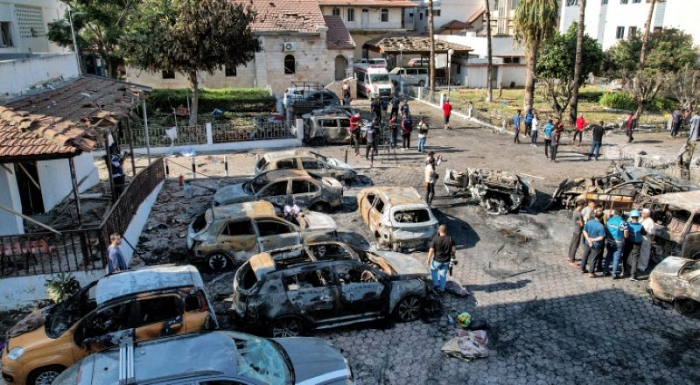 المستشفى "المعمداني" غداه تعرضه للقصف | تصوير: شاشة