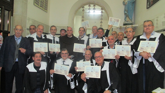 وبعد ان انتظم قدامى الطلاب في الطابور، كما كان في ايام الدراسة، صعدوا الى صفهم يتقدمهم معلمهم من تلك الفترة الاستاذ أديب حزان وكان في استقبالهم على مدخل الصف الذي تعلموا به في السنة الدراسيّة الاخيرة، مدير المدرسة الحالي الاب أمجد صبّارة حيث دعى "الطلاب" الى ارتداء روب التخرّج الرسمي الذي اعده خصيصا للحدث.