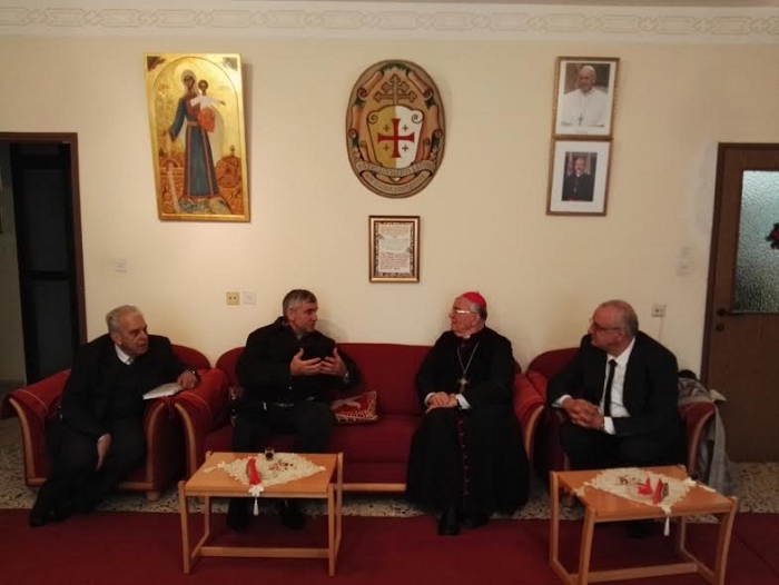 ثم توجه الوزير والوفد المرافق الى ديوان مطرانيّة اللاتين لتقديم التهاني بالعيد لسيادة المطران د. بولس ماركوتسو فكان لقاء مميزا خصوصا أن كل من السفير والمطرن يحملان شهادة الدكتوراة باللغة العربية التي درسا اصولها في جامعة دمشق. فكان الحديث بينهما بطبيعة الحال باللغة العربية الفصحى وسط شهادة واعجاب الحاضرين ومن بينهم استاذ اللغة العربية د. عطالله جبر، علما أن السفير البلغاري يجيد اللغة الايطالية بالاضافة الى لغات اخرى وهو يدرس اللغة العبرية في هذه الايام.