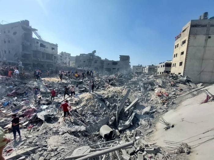ارتكبت اسرائيل، اليوم الأربعاء، مجزرة ثانية في أقل من 24 ساعة في مخم جباليا. وهذه المرة في منطقة الفالوجا، حيث تم قصف حي سكني كامل وتدمير منازله على رؤوس قاطنيه. وهناك دمار هائل وأعداد كبيرة من الشهداء والجرحى، واغلبهم من الأطفال والنساء.