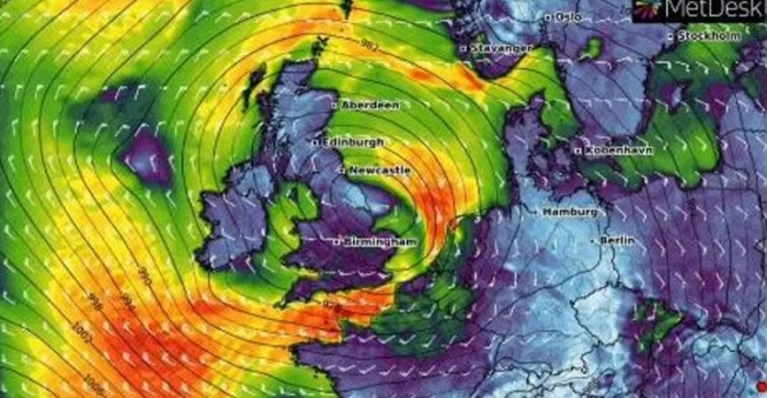 واندفعت الأمطار الغزيرة المرتبطة بالعاصفة إلى الشاطئ في الطرف الجنوبي الغربي من إنجلترا، وحذرت هيئة الأرصاد الجوية الوطنية في المملكة المتحدة من مخاطر الفيضانات، وحثت الناس على اتخاذ الاحتياطات اللازمة.