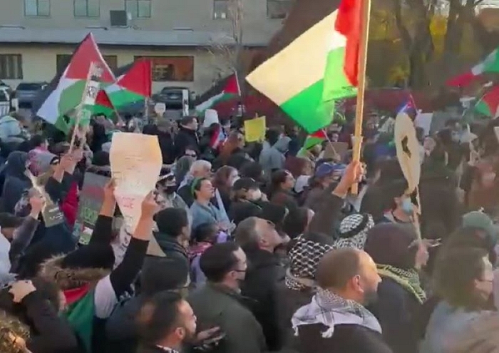 استقبل عدد كبير من المتظاهرين الأمريكيين الرئيس الأمريكي، جو بايدن، في مدينة شيكاغو، بمظاهرة مؤيدة لغزة والفلسطينيين ومنددة بانحيازه الكامل لاسرائيل.