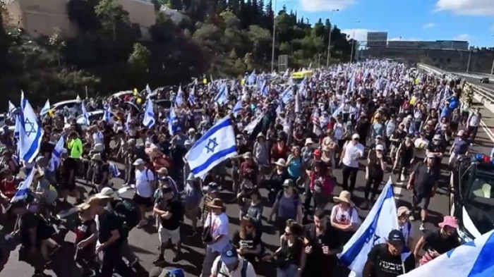 وتزامنًا مع مظاهرة القدس تجري مظاهرة حاشدة اخرى في تل ابيب.