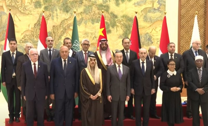 وندد وزير الخارجية الروسي سيرغي لافروف خلال الاجتماع "بكل مظاهر الإرهاب التي تنتهك القانون الدولي". وبدوره قال وزير الخارجية السعودي فيصل بن فرحان أنه لا يمكن الحديث في هذه المرحلة عن مستقبل غزة، قبل وقف إطلاق النار وكافة أشكال العنف ضد المدنيين والمناطق المدنية، لكن من المهم عند التفكير في اليوم الذي يلي هذه الحرب ألا يقتصر الحل على غزة فقط، فلا توجد طروحات مقبولة خارج سياق الدفع بحل شامل على أساس حل الدولتين.