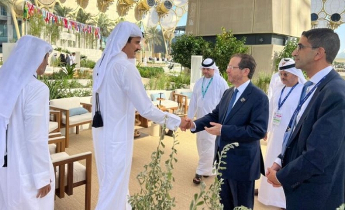 وكانت الامارات قد نشرت صورة لقاء هيرتسوغ مع أمير قطر ويظهر في بدايته تسليم اليد باليد بينهما.