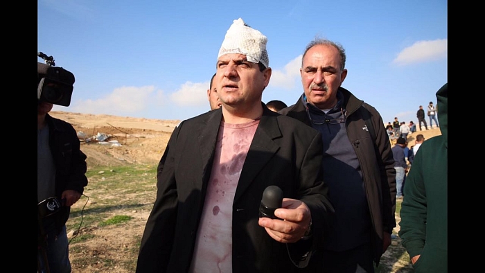 خلال فعاليات إحتجاجية ضد هدم البيوت في أم الحيران، يوم الإربعاء 18.1.17 اعتدت قوات الشرطة على النائب أيمن عودة رئيس القائمة المشتركة، وإطلقت الرصاص الاسفنجي على رأسه وظهره، وذلك بعد رشّ غاز الفلفل على عينيه.