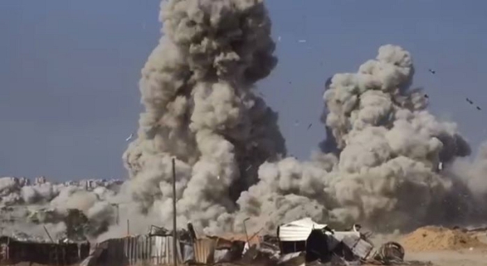 وبالمقابل يقوم الطيران الحربي الاسرائيليي بقصف عدة مناطق مأهولة بالسكان في محاور مختلفة من القطاع. وسقط عشرات الشهداء جراء قصف في رفح وحانيونس ودير البلح قي الجنوب، ومخيم النصيرات وسط القطاع.