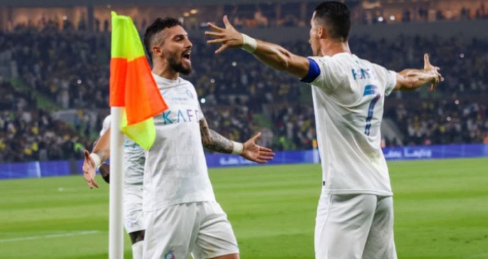 فرحة رونالدو بالتسجيل في مرمى الاتحاد ويشاركه البرازيلي أليكس تيليس