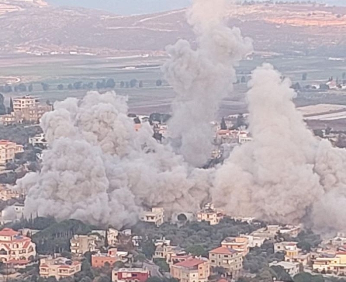 قصف على بلدة كفركلا | مواقع التواصلوفي وقت سابق من اليوم شنت القوات الاسرائيلية غارة بين الأحياء السكنية في عمق بلدة كفركلا في القطاع الشرقي جنوب لبنان، وغارتين عند أطراف البلدة. وقال الجيش انه استهدف بنى تحتية ومواقع عسكرية لحزب الله. كما استهدف الطيران الاسرائيليي المسيّر بصاروخين منطقة "اللبونة" جنوبي الناقورة في جنوب لبنان، وأطراف بلدة رامية الحدودية في جنوب لبنان.