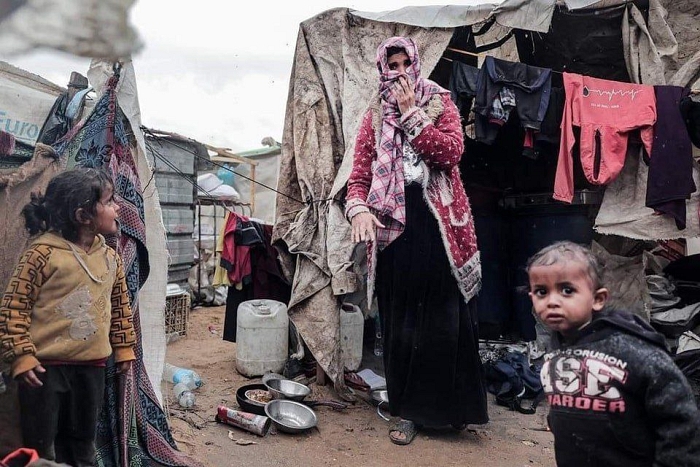 ويعيش النازحون في رفح (في الصور) مأساة حقيقة مع هطول الأمطار والأجواء الباردة. فلا سقف يحميهم، ولا حائط يخفف شدة البرد، والمطر يزيد من المعاناة.
