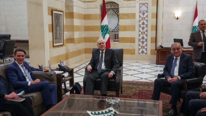 رئيس الوزراء اللبناني، نجيب ميقاتي، في أحد الاجتماعات مع المبعوث الأمريكي، آموس هوكشتاين