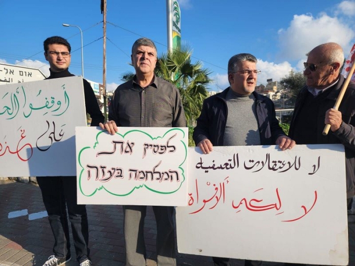 بمبادرة الجبهة والحزب الشيوعي في ام الفحم، شارك العشرات من الناشطين والأهالي في وقفة احتجاجية، عصر اليوم الجمعة، ضد الحرب على غزة، وذلك على الشارع الرئيسي في مدخل المدينة.